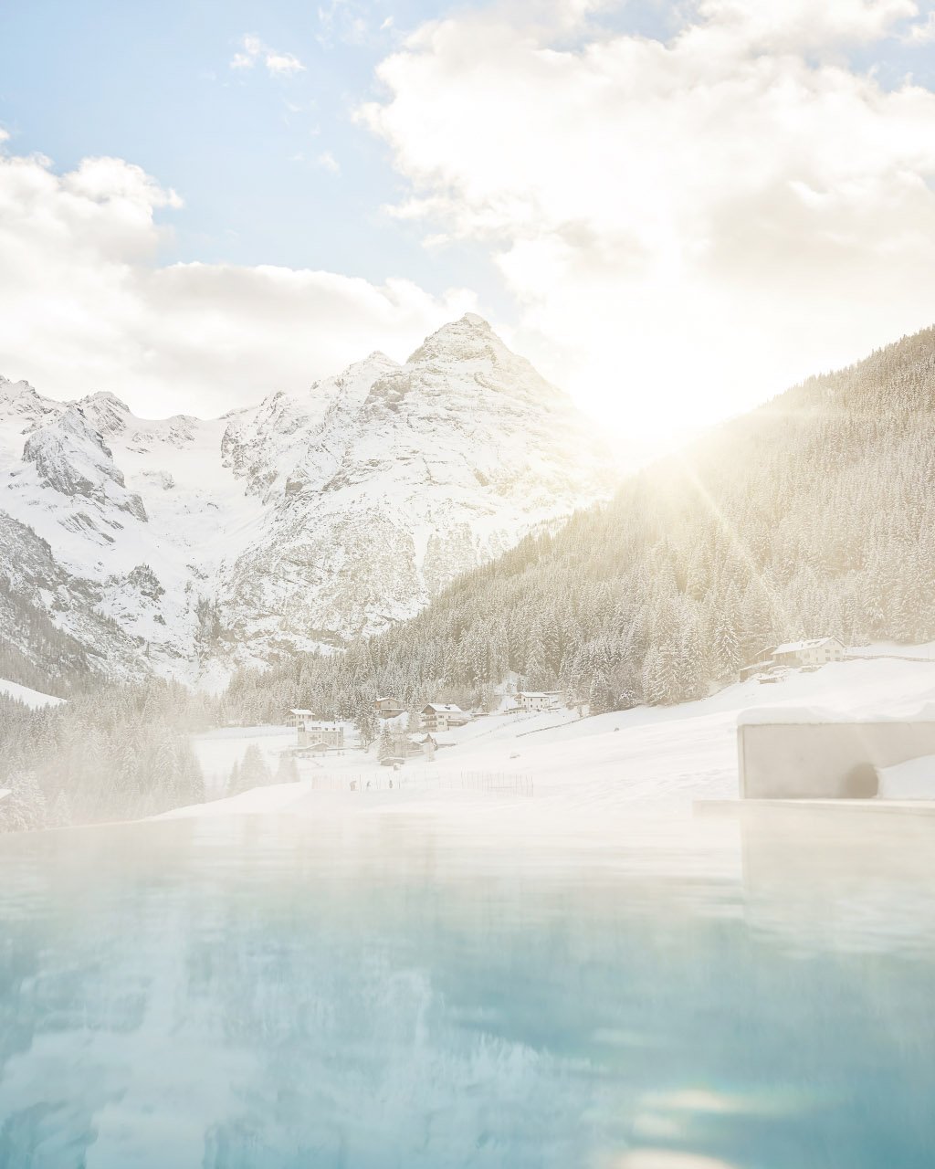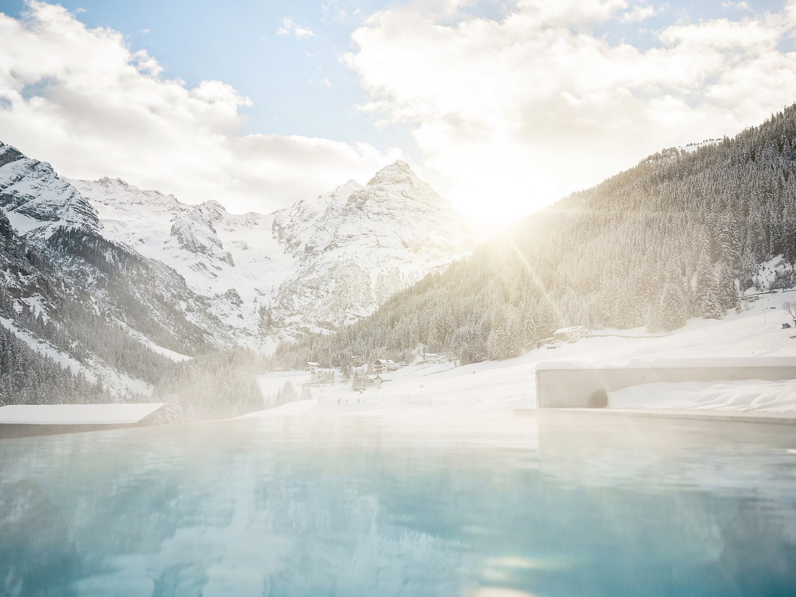 - ganzjährig beheizter Infinitypool mit Gletscherblick